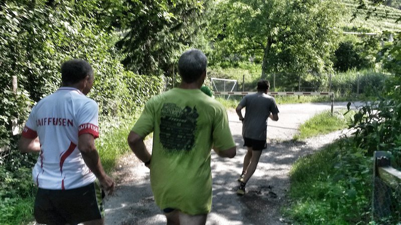 LäuferInnen waren wir heute sechs, beim Brunch dann 18 Nasen. Man merkt es, die Grischuni-Runners sind manchmal mehr Gourmets statt Läufer. ;-) Der Anteil der Läufer war so tief, da einige verletzt sind (Hermi, Hampi) oder Muskelkater vom Jugitag (Carla, Nicolas) haben.